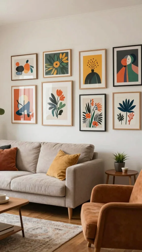 Did you know rotating artwork by season can make a small living room feel 20% more spacious? Designate a dedicated spot for seasonal art to keep your art for living room wall feeling fresh year-round and easy to swap in.