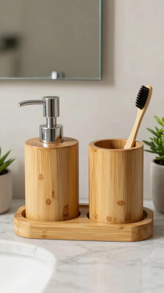Opt for a bamboo bath accessories set to add a touch of elegance while being eco-friendly.