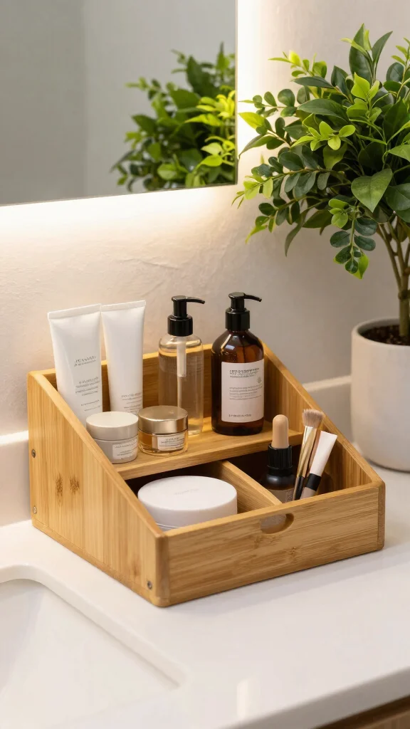 Keep your bathroom beautifully organized with a sustainable vanity organizer that reflects both style and functionality. Made from materials like bamboo or recycled products, these organizers provide a chic solution for storing makeup, skincare, and other essentials. Imagine a tastefully designed organizer that fits perfectly on your vanity, keeping everything tidy and accessible.