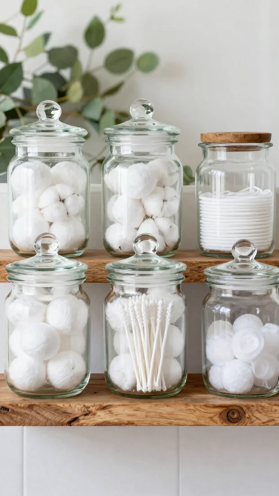 Utilize recycled glass jar organizers to keep your bathroom clutter-free and chic.