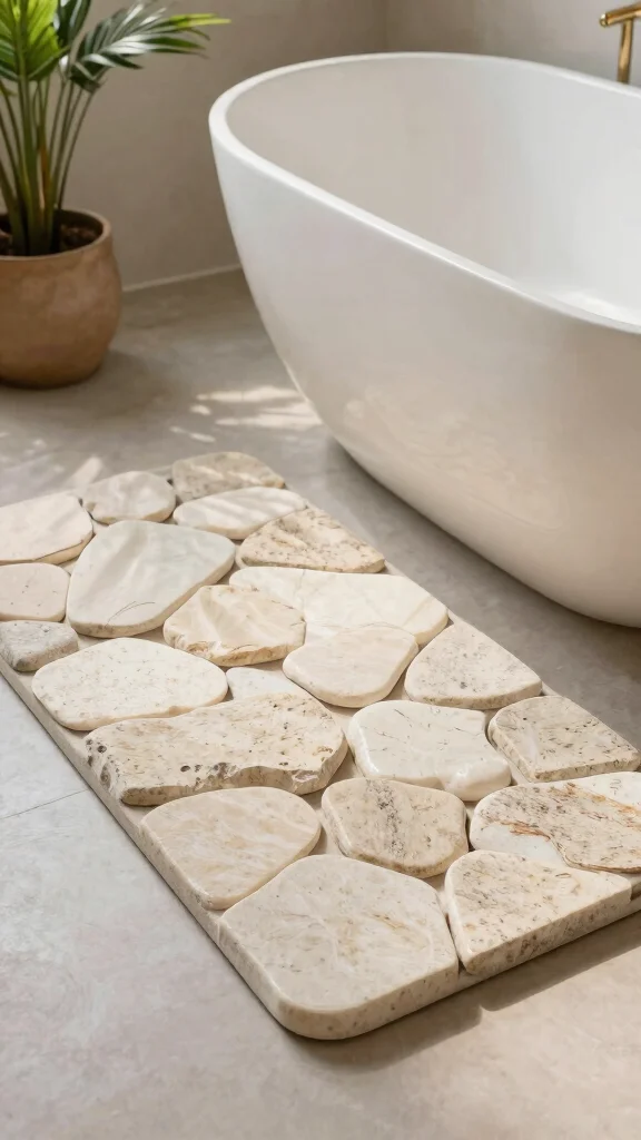 Consider these ideas to integrate a stone bath mat into your space: