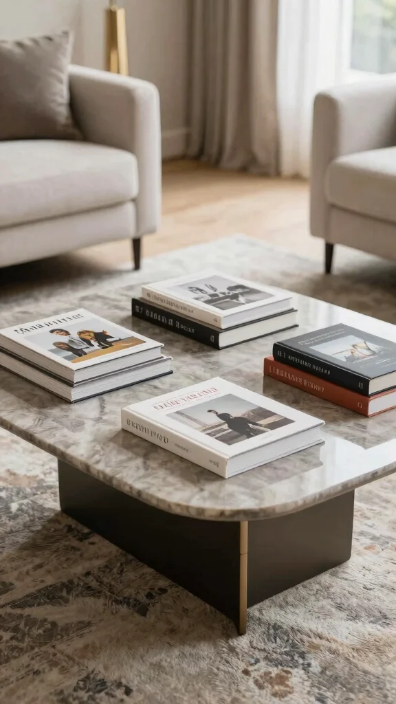 Pro Tip: When styling your coffee table, layer your books. Stack a couple horizontally and place a taller book vertically next to them. This creates height variation, making the arrangement more visually appealing. Don’t forget to add a few stylish home accessories like candles or small plants to enhance the overall look!