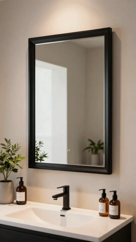 Fun fact: Black framed mirrors can visually expand a bathroom by up to 20% thanks to depth and reflected light. Pair them with warm lighting to elevate space, turning a simple mirror into a chic focal point that’s both practical and striking.
