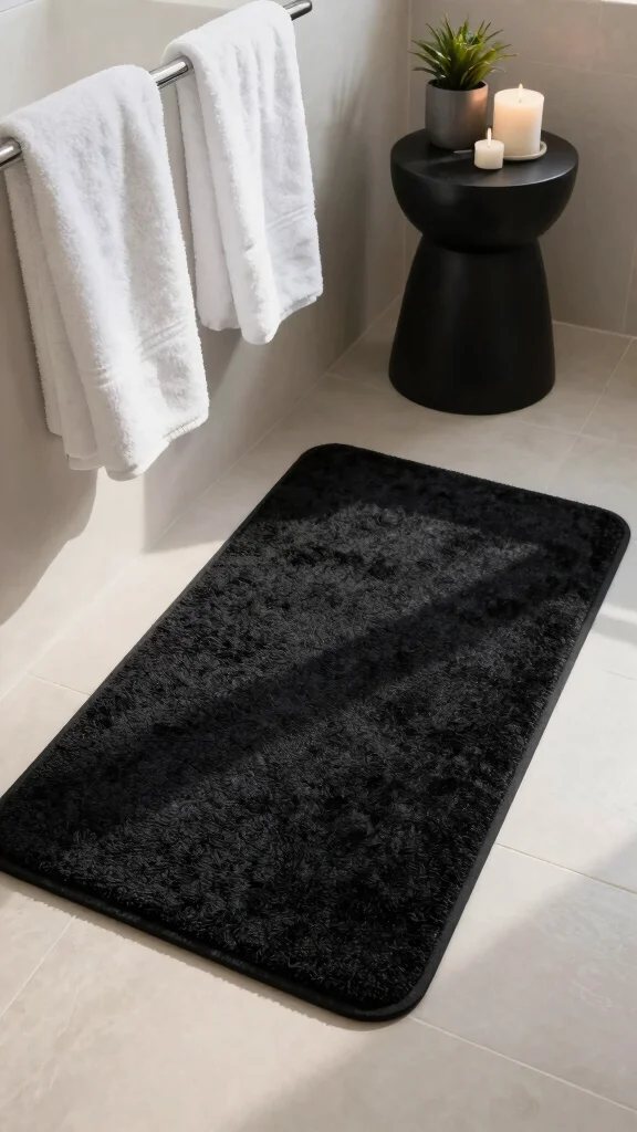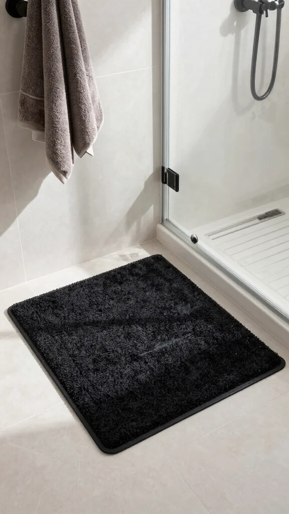 Incorporating a black bath mat creates a luxurious feel while ensuring comfort and safety in your modern bathroom.