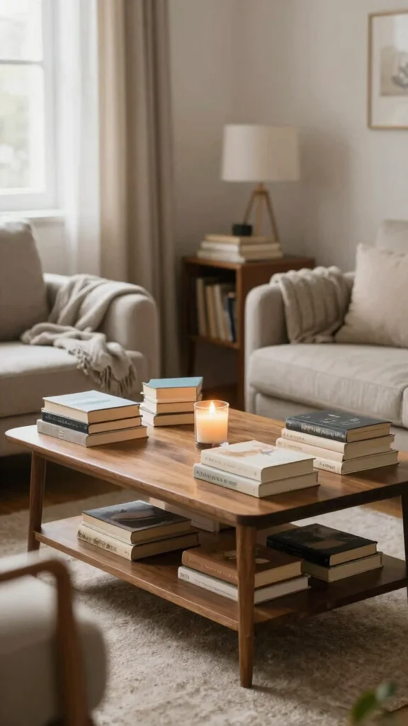 This approach not only organizes your books but also adds an artistic flair to your coffee table.