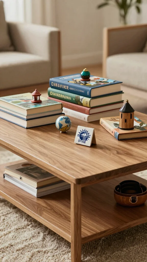 Showcase personal story collections on your coffee table to add a warm, heartfelt touch. Whether it’s your favorite novels, travel journals, or memoirs, this display reflects your unique personality and journey. Stack books that tell your story alongside a few personal trinkets or photographs, creating an inviting space for guests to connect with your interests.