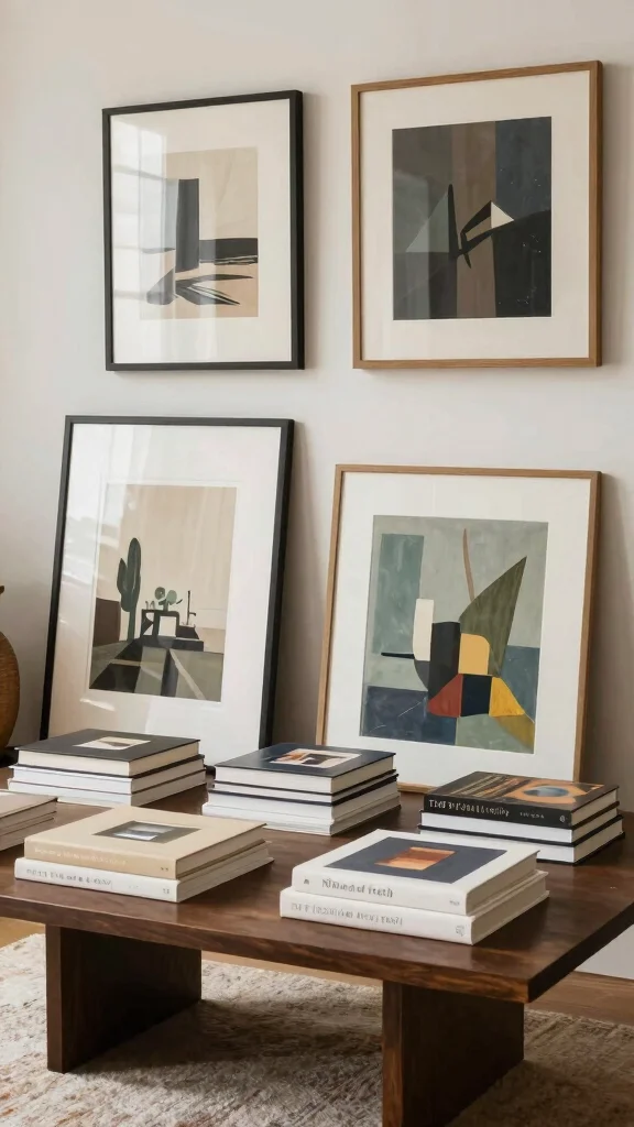 For a successful implementation, seek out books that feature beautiful designs and intriguing imagery. You can mix sizes and orientations for variety while keeping the display balanced. This artistic approach not only highlights your passion for art but also creates a conversational atmosphere.