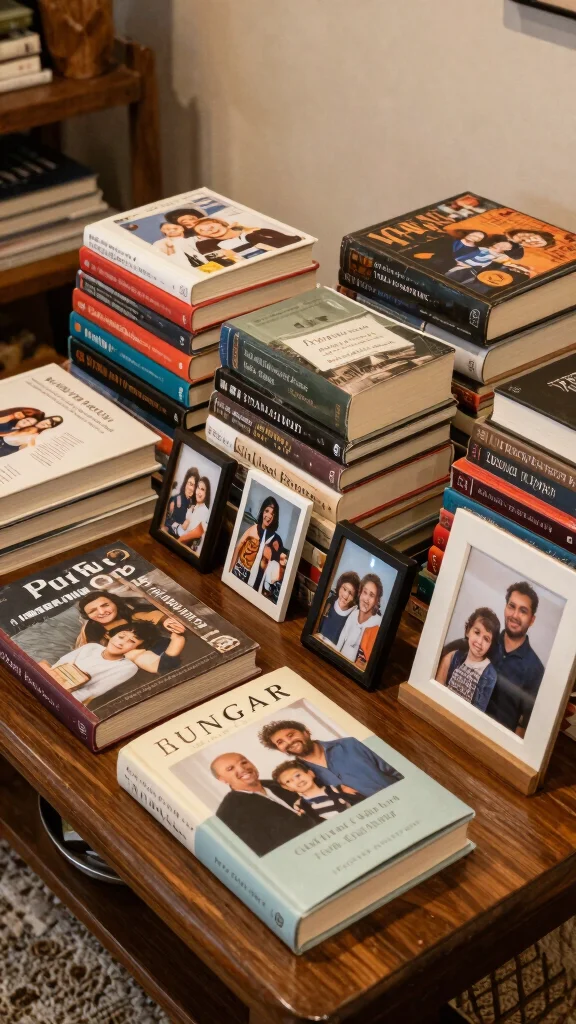 To create this family display, allow each member to choose books that resonate with them. Mixing genres helps embrace the diversity of interests and creates a cozy zone for everyone. Incorporate personal photos or items that represent each family member’s interests for a heartfelt touch.