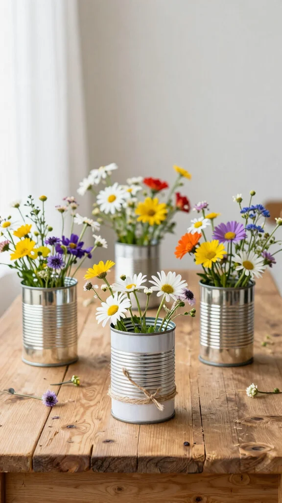 14. Upcycled Tin Cans with Field Flowers