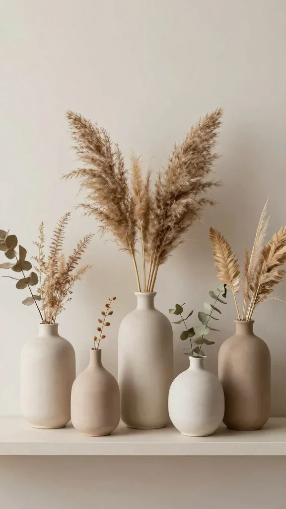 2. Ceramic Bud Vases with Dried Foliage