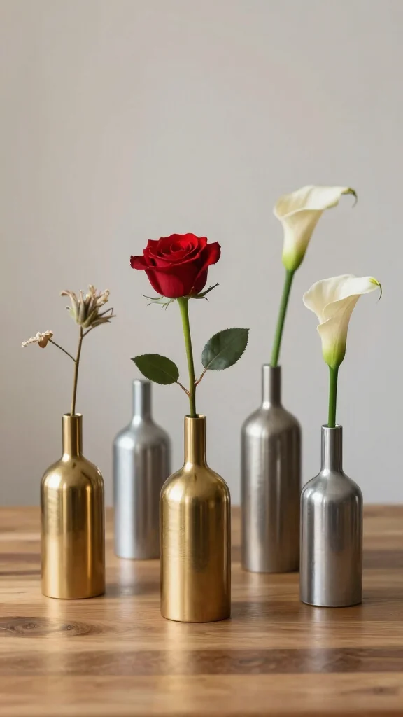 3. Minimalist Metal Vases with Single Stems