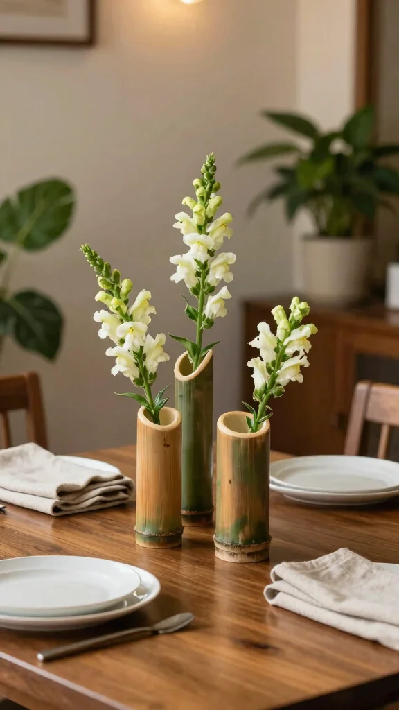 Use bamboo vases individually or in groups. They look great with elongated flowers like snapdragons or even succulent cuttings, bringing a fresh, vibrant look to your space.