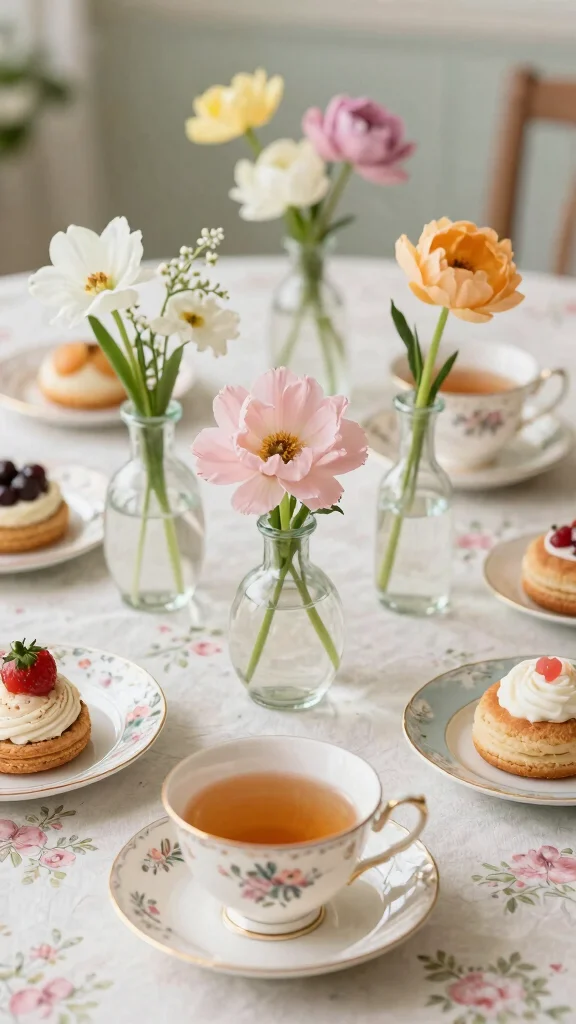For a whimsical flair, vintage tea cups transformed into bud vases create a unique aesthetic. These charming pieces add a touch of nostalgia and character to your decor, especially when used for single stem arrangements.