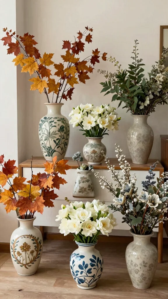 Using seasonal vases allows you to keep your decor fresh and relevant while encouraging creativity in arranging flowers. They can easily match seasonal festivities or nature’s colors, making them a versatile addition to your home. Consider incorporating seasonal flowers that match the vase details for a cohesive look.