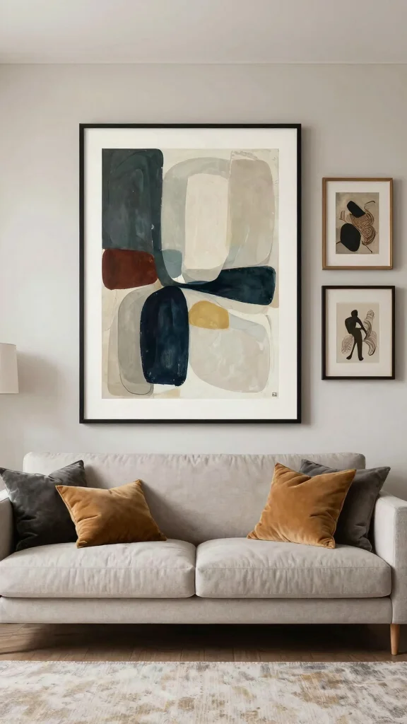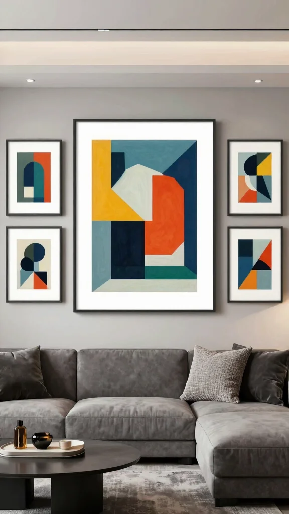 Using bold abstract prints can instantly elevate your living room, creating a striking focal point. The vibrant colors and dynamic shapes of these artworks can energize the space, encouraging creativity and conversation. For example, a large abstract piece in bright hues can be beautifully complemented by smaller framed prints in softer shades, bringing balance to the overall aesthetic.
