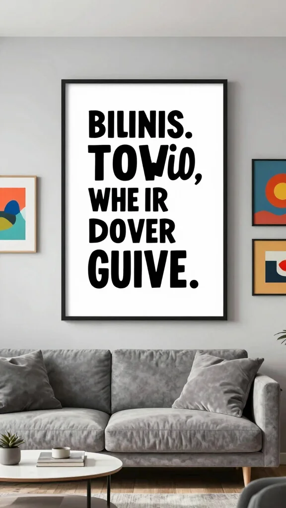 Brighten your living room with inspirational quotes displayed in stylish frames. Bold typography set against a simple backdrop can create an uplifting focal point that resonates with you and your family. Choose quotes that reflect your values or goals, enhancing your space with positivity.