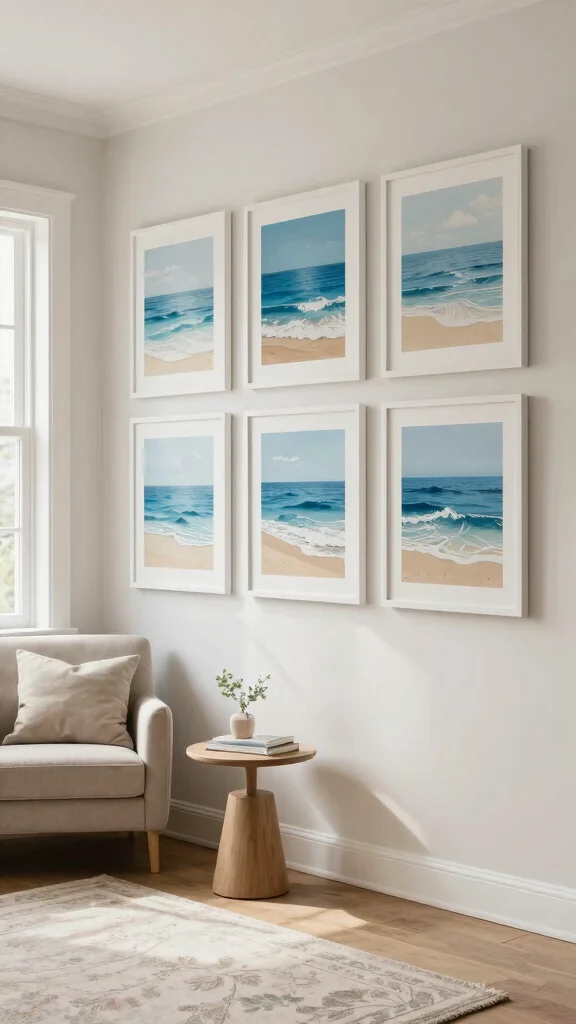 – Arrange prints in a grid or salon style for contemporary flair.