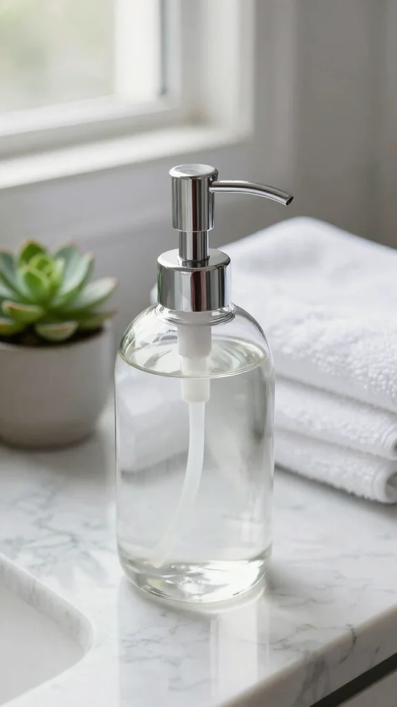 Opt for a clear glass soap dispenser to enhance visibility and maintain a light, airy feel in your bathroom.