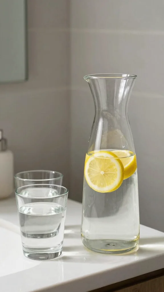 Include a glass water carafe to stay hydrated while adding a stylish element to your bathroom.