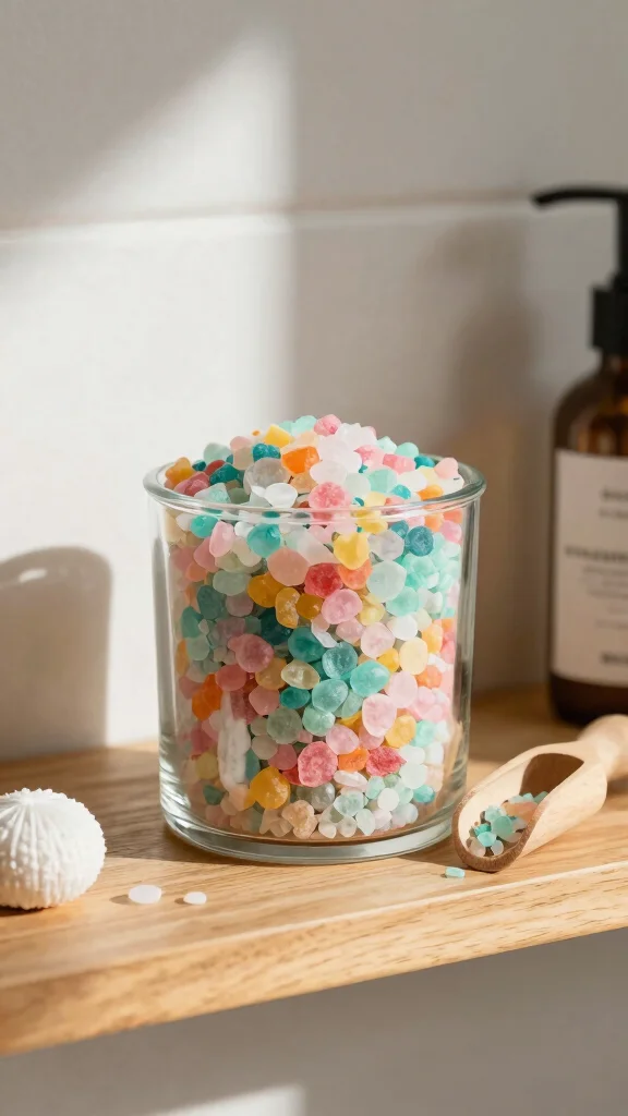 Consider using a container with a cork or bamboo lid to maintain freshness while adding a natural touch. You can even create a spa-like atmosphere by displaying various bath salts in separate containers.