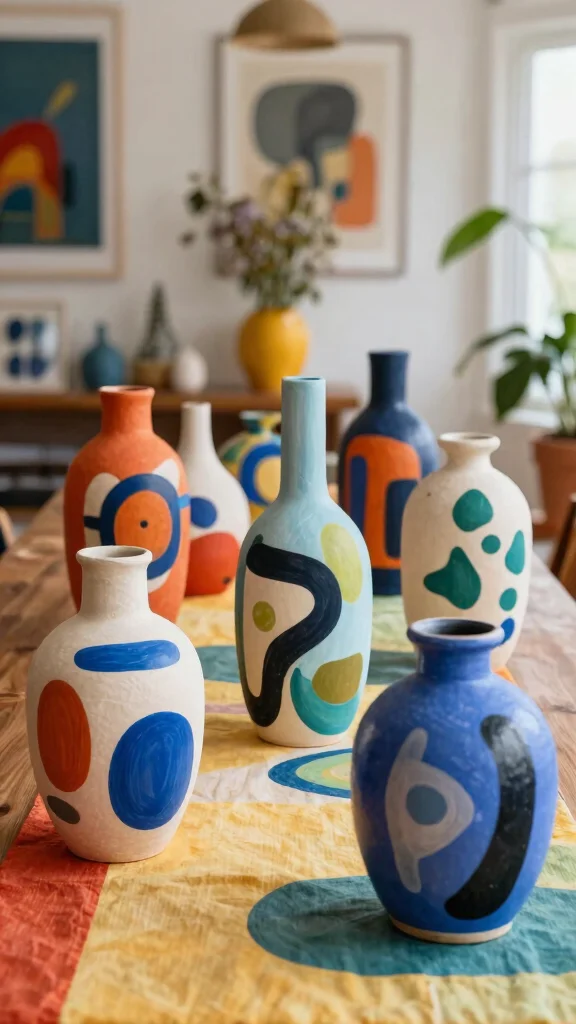 Incorporate hand-painted vases with bold geometric patterns to make a striking statement in your decor.