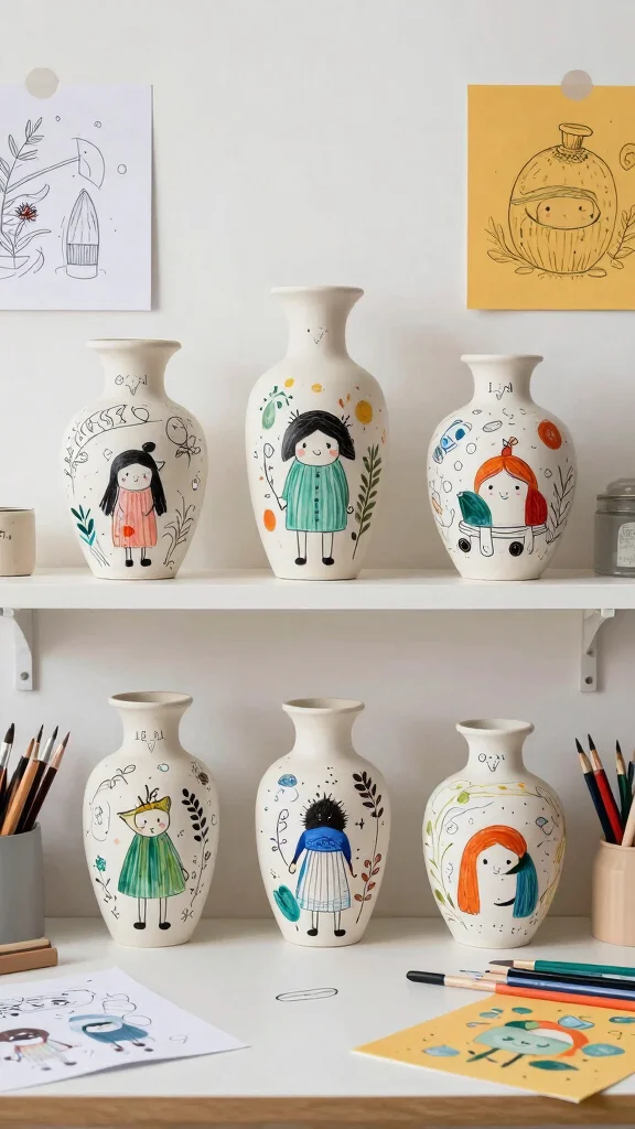 Look for vases featuring hand-drawn illustrations to add an artistic and personal flair to your decor.
