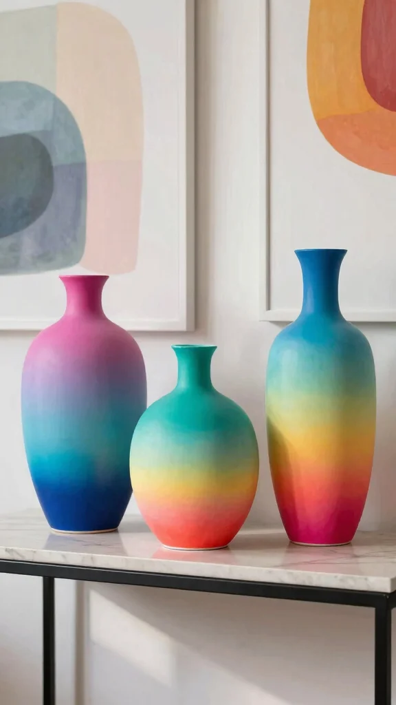 Hand-painted vases featuring ombre effects bring modern artistry into your home, captivating attention with their unique color transitions.
