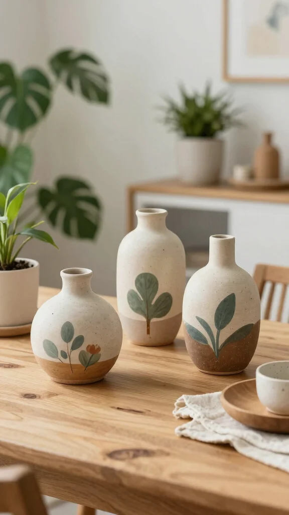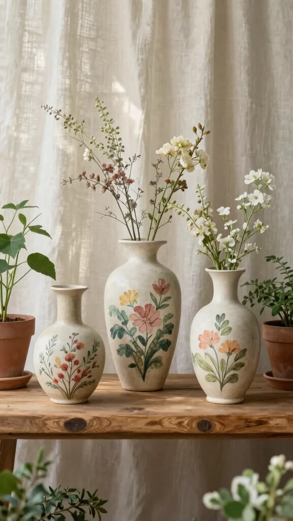 To enhance this style, pair these vases with fresh flowers or dried branches from your garden. For a sustainable touch, seek out vases crafted from eco-friendly materials, reinforcing your commitment to the environment.