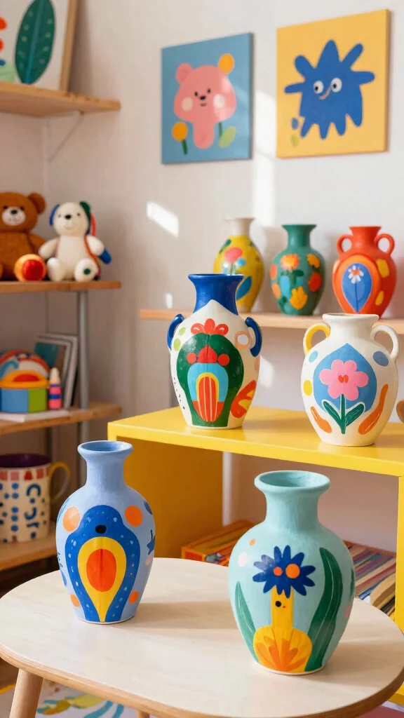 Inject fun and creativity into your home with whimsical hand-painted vases that add a playful touch. These vases often showcase quirky shapes and vibrant colors, from charming animals to abstract forms, making them perfect for brightening any space. Ideal for children’s rooms or casual living areas, they invite joy and spark imagination.