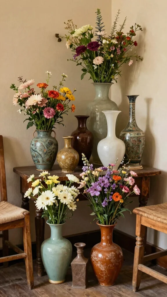 Blend vintage vases with modern decor for a unique and stylish look.