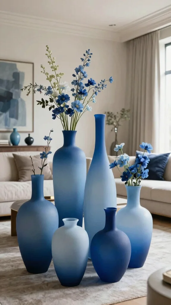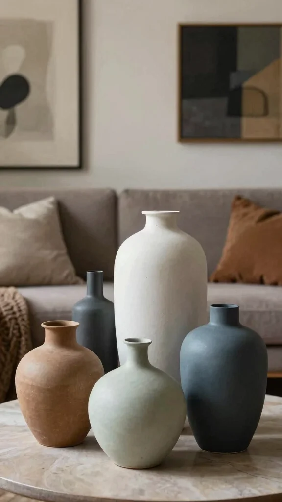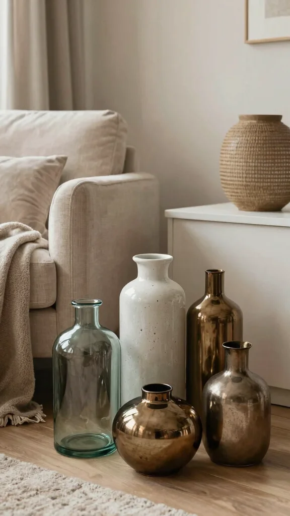 Start with scale: choose oversized vases that match the room’s proportions and group 2–3 of different heights to create a focal point in the living area.