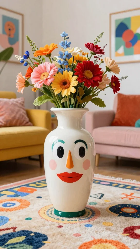 Look for oversized shapes, quirky patterns, or playful colors that stand out. A large, whimsically designed vase can serve as an eye-catching centerpiece or a playful accent in your home.