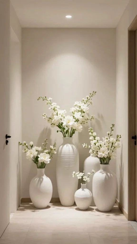 Placement can make or break the look. Start with decorative vase placements on entry consoles, living room corners, and mantels.