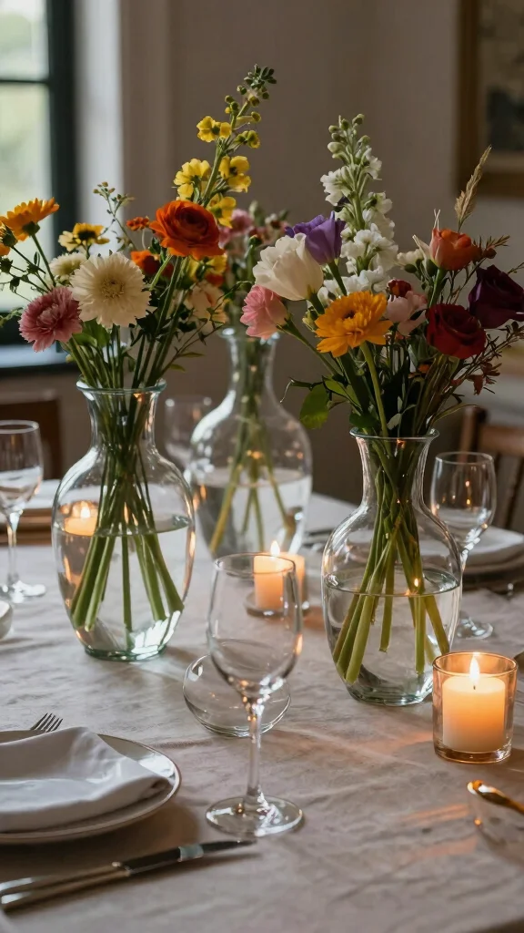 Incorporate eco-friendly decor by using upcycled vintage vases.