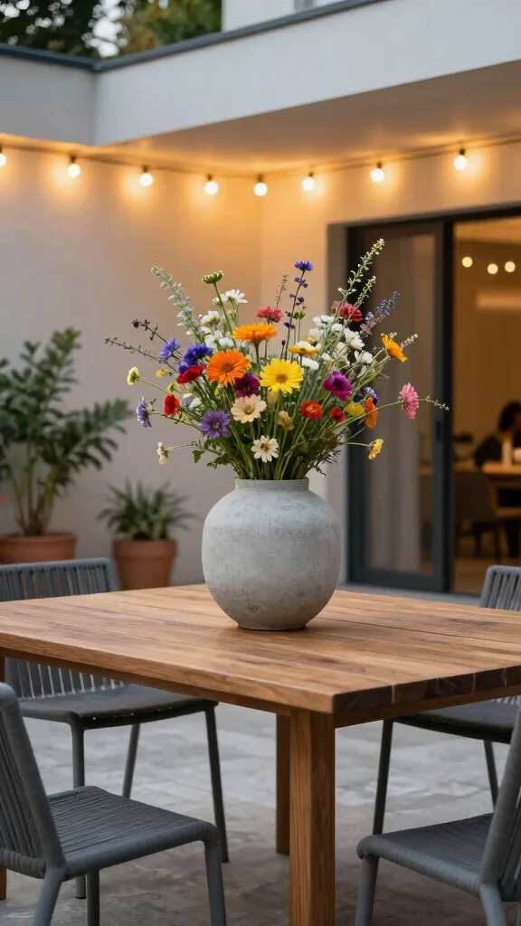 Choose a large concrete vase and fill it with wildflowers or a single branch to create a striking focal point. These vases work wonderfully on a minimalistic shelf or as a centerpiece on a dining table.