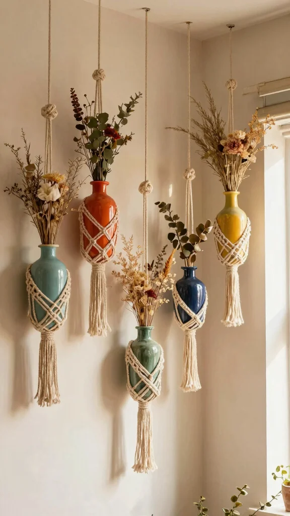 For a truly bohemian twist, try macramé vase holders.