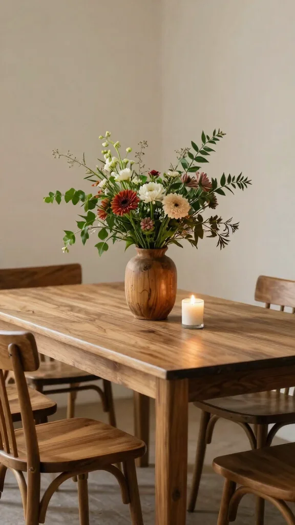 These vases add a touch of organic charm and can be used in various settings, from your living room to your dining table. A large wooden vase filled with seasonal flowers can instantly uplift your space.