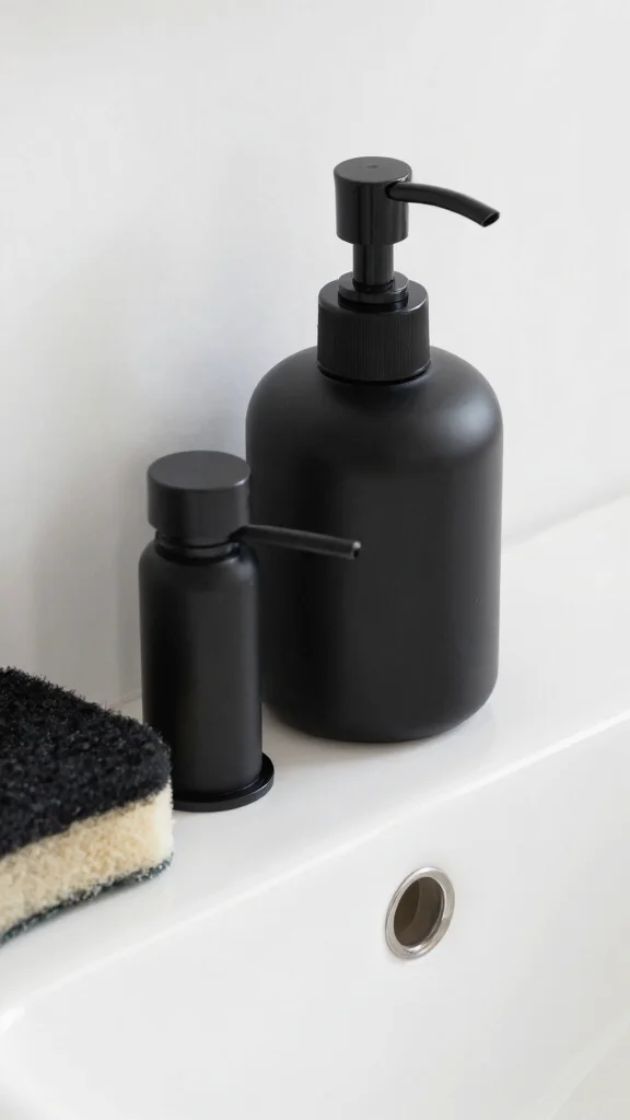 An elegant matte black soap dispenser adds a touch of sophistication to your bathroom. This design choice exudes modern charm while providing visual harmony with lighter sinks and countertops. Think about a sleek pump-style dispenser that stands out beautifully, enhancing the overall aesthetic. Pair it with other matte black accessories for a cohesive look that elevates your space.