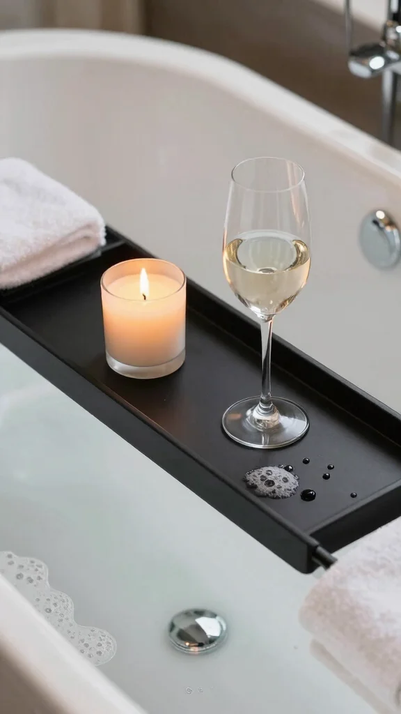 An elegant matte black bath tray can elevate your soaking experience to new heights. Place it across your bathtub to hold candles, a book, or a glass of wine, creating a serene atmosphere for relaxation. Opt for a design with handles for easy lifting, balancing style with functionality. This accessory adds a luxurious touch while keeping your items organized and within reach.