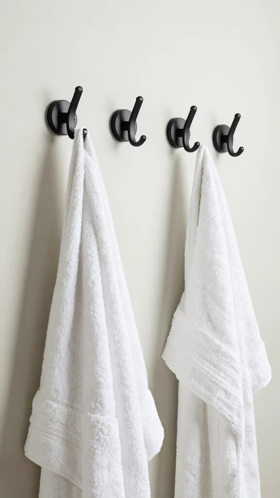 Matte black wall hooks are both practical and decorative, making them a smart addition to your bathroom. They provide an ideal solution for hanging towels, robes, or accessories without cluttering your space. Select simple designs that seamlessly fit into your bathroom’s minimalist decor for a cohesive look. Position them at accessible heights to ensure they serve their purpose effectively.