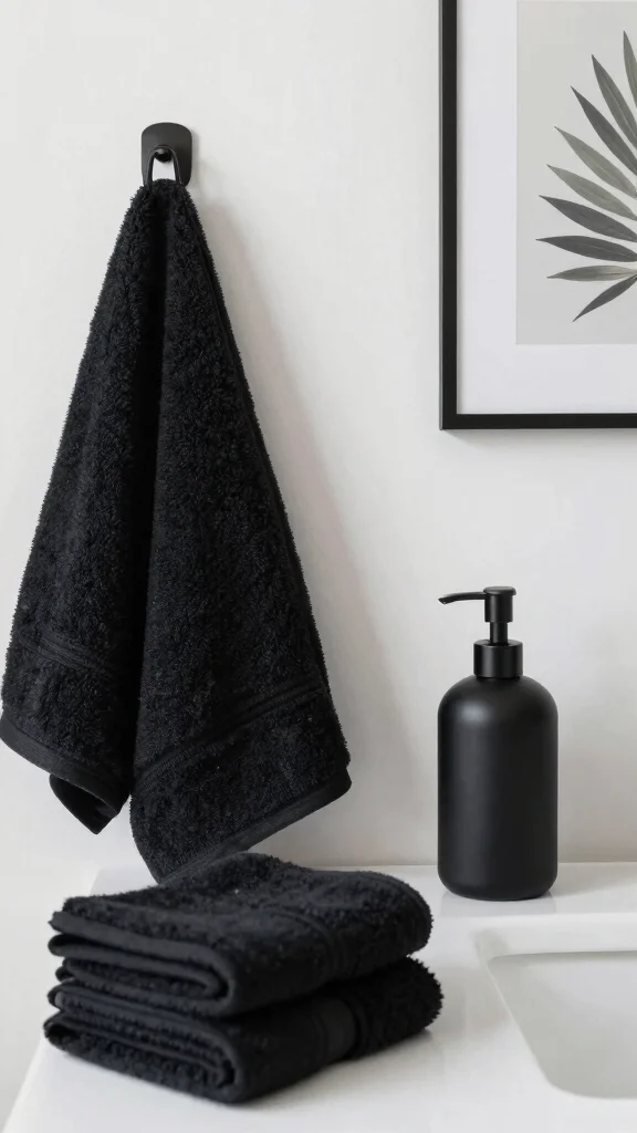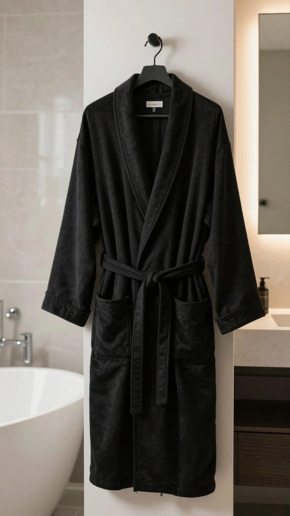 A sleek matte black bathrobe can enhance your bathroom’s cozy appeal while adding a touch of sophistication. Opt for soft, high-quality fabric that feels luxurious against your skin, making your post-bath experience even more enjoyable. This accessory not only provides comfort but also complements the stylish decor of your bathroom.