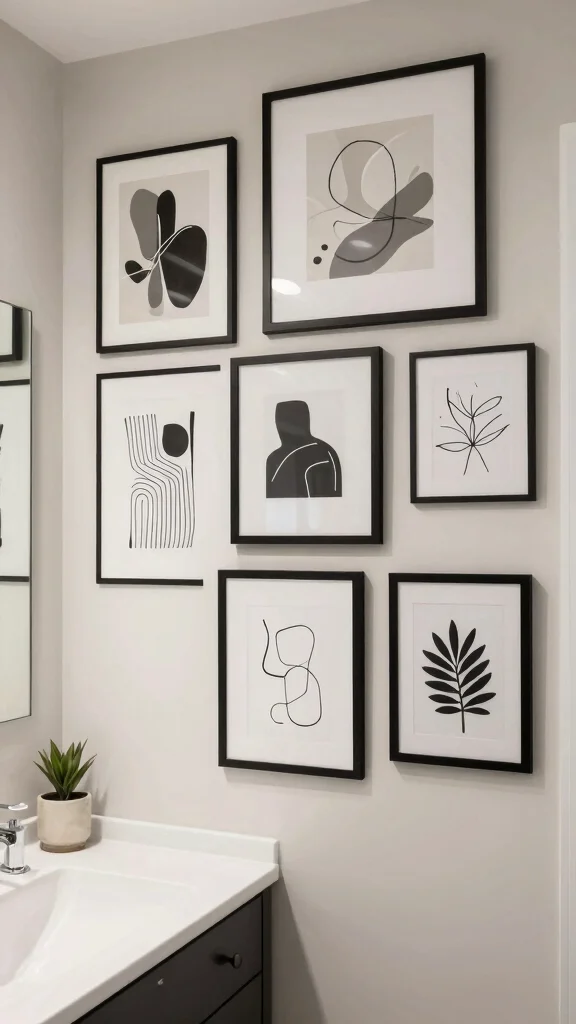 Ensure the artwork is moisture-resistant to withstand the bathroom environment and maintain its beauty over time. Using a gallery-style layout can create an artistic statement that elevates the ambiance of your space.