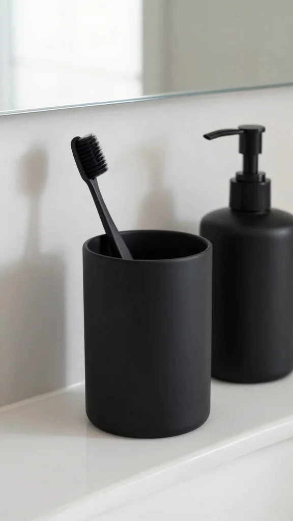 A matte black toothbrush holder is a small yet impactful addition to your bathroom decor. Opt for a simple, cylindrical design that emphasizes both functionality and style. This accessory pairs easily with other black accents and helps keep your countertop organized. Consider holders that offer compartments for storing toothpaste and other essentials for added practicality.