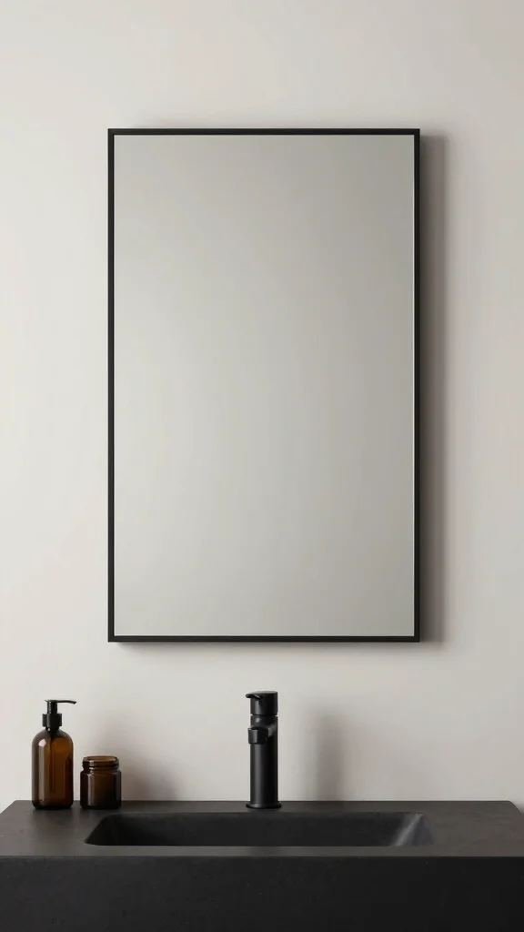A stylish matte black mirror can serve as a stunning centerpiece in your modern bathroom. Choose a round or square shape that complements your decor style, enhancing both function and aesthetics. The matte finish adds sophistication while ensuring the mirror stands out against your wall color. Consider mirrors with integrated lighting for added practicality, enriching the overall ambiance.