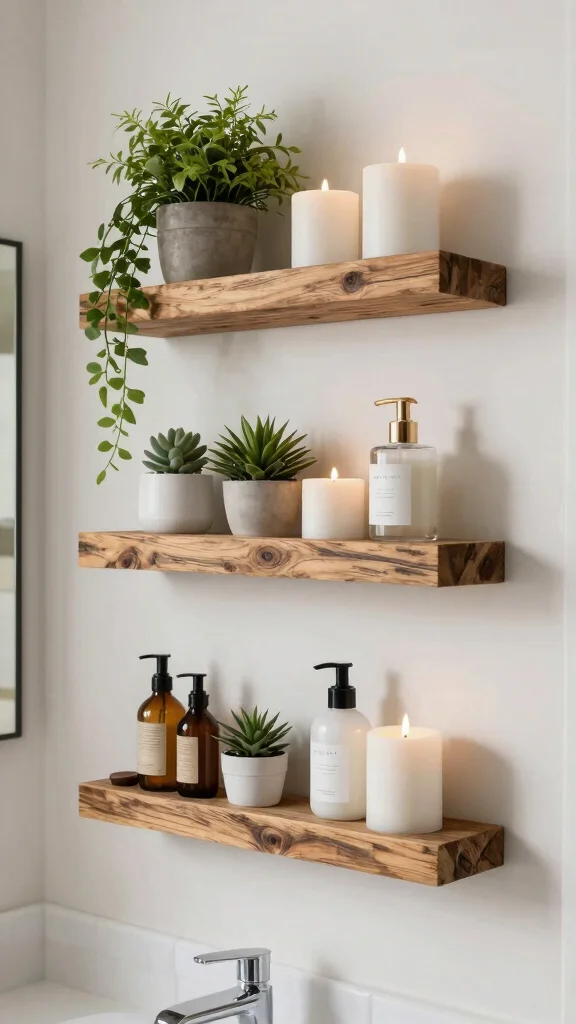 Decorative wall shelves are a fantastic way to showcase your favorite bathroom accessories while keeping surfaces clutter-free. Opt for shelves made from reclaimed wood or sustainable materials to add character and charm. These shelves can hold items ranging from plants to candles, infusing personality into your modern bathroom design.