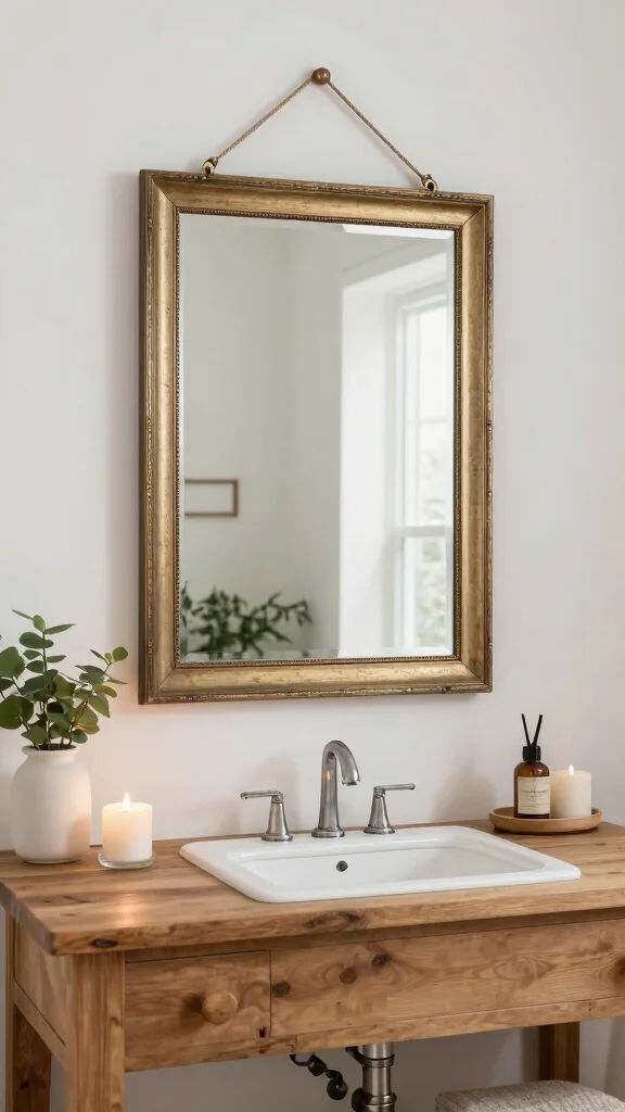 Incorporating a vintage mirror is a timeless choice that beautifully balances modern design with nostalgic appeal.
