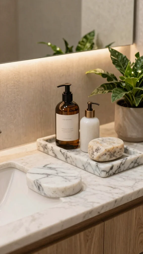 Enhance your bathroom with natural stone accents such as soap dishes or trays to add a luxurious touch. These stunning accessories not only look beautiful but also provide durable alternatives to plastic. The unique textures and colors of natural stone enrich the clean aesthetic of a modern bathroom.