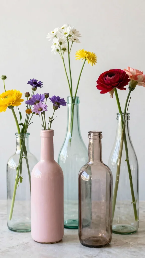 Transform old glass bottles into stylish vases with a little creativity! This eco-friendly project not only reduces waste but also adds unique charm to your decor. Picture a collection of painted bottles in soft pastels or metallics, each serving as a delightful vessel for flowers.