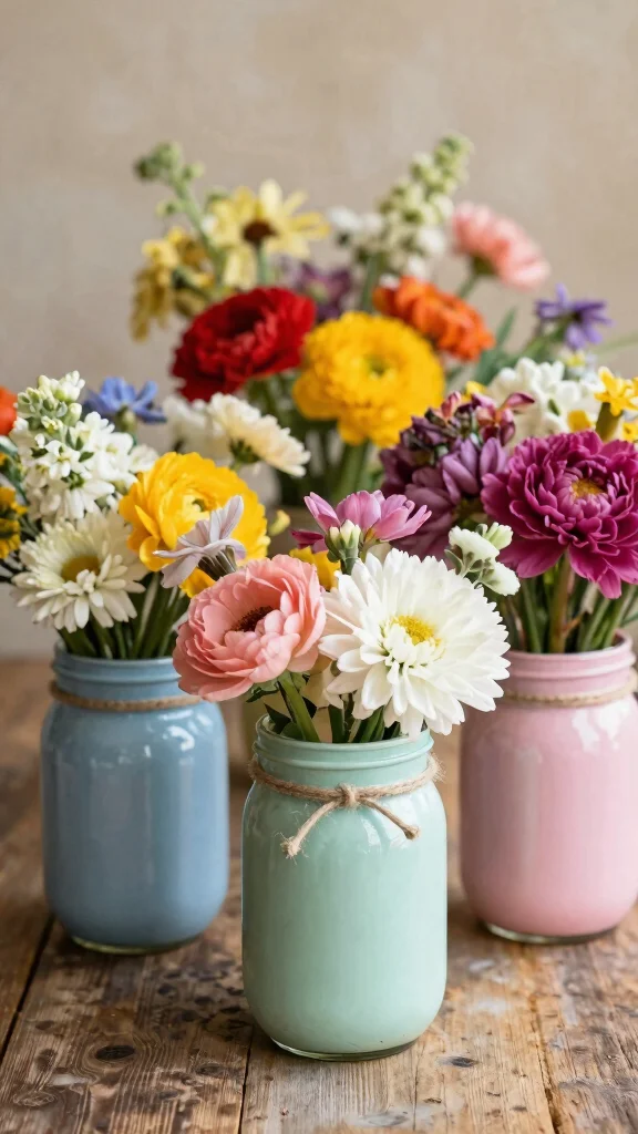 Transform old mason jars into chic vases that fit any decor style! Their simple glass design offers endless versatility, making them a beloved choice for home decor. Picture a cluster of jars filled with fresh flowers, adding a charming touch to your table.