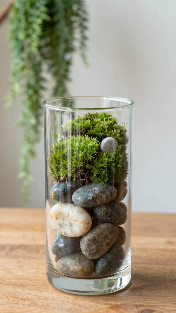 Fun Fact: Natural elements in old vases can boost calm by 40% in minutes. Fill clear glass vases with twigs, stones, or sand to create an easy, budget-friendly display that brings the outdoors in and adds organic charm.